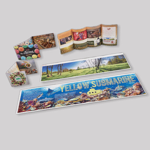 Brochures are an essential marketing tool. It can contain lots of information including images and graphs. A sheet of 29.7x63 cm printed 2 sides and tri-folded to A4 has enough space for a company profile, a product specification or an introduction of a new restaurant. Most flyers are printed both sides to target both, Arabic and English readers.