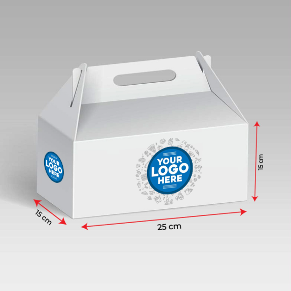 Strong and stylish takeaway food box with built-in handle, designed for easy carrying and secure packaging of hot or cold food items.