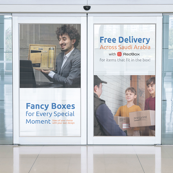 High-quality perforated self-adhesive vinyl designed for see-through window graphics. It allows one-way visibility—people outside see the printed design, while those inside can still see out clearly. Perfect for branding, advertising, and privacy applications without blocking natural light.